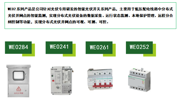 依托公司在智能配用电领域的设备研发与技术优势,打造了满足新能源需求的新设备、新产品,自主研发了关口计量及采集终端、10kV网源分界开关、电能质量监测终端、物联边缘处理单元、防孤岛保护装置、频率电压紧急控制装置、新能源箱变测控装置、防孤岛监测终端、光伏接口转接器、光伏规约转换器、全系列监控仪表、智能光伏开关、光伏计量箱、新能源智能箱变等系列产品。