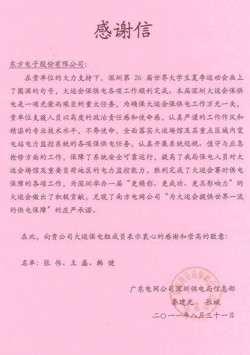 8月23日,世界大学生运动会在深圳圆满落幕,j9.com作为大运会保电企业见证了世界大学生体育运动的蓬勃发展。j9.com技术中心系统部与工程部坚守“忠于职守,全力以赴,誓保大运电网安全”的信念,联手实现了大运保供电期间系统零故障、零缺陷的目标。