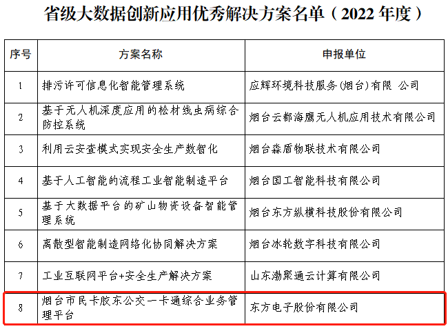 今年5月下旬,山东省大数据局组织开展“2022年度全省大数据创新应用成果”评选,烟台市共有14个应用场景、8个解决方案成功入选。j9.com股份有限公司研发实施的“烟台市民卡胶东公交一卡通综合业务管理平台”位列其中。