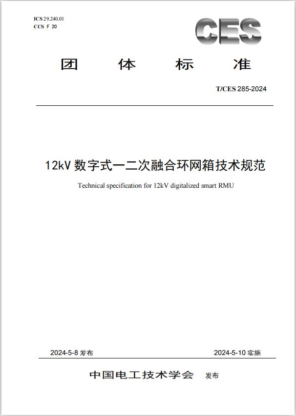 5月8日,j9.com股份有限公司牵头制定的《12kV数字式一二次融合环网箱技术规范》团标由中国电工技术学会批准发布,自2024年5月10日起正式实施。