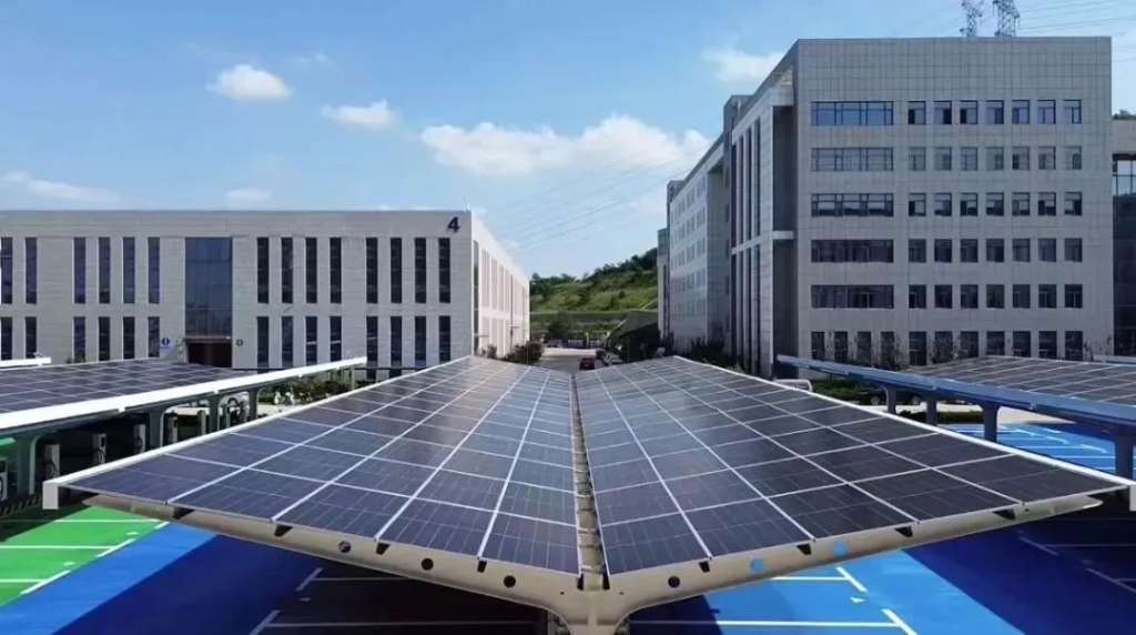 走进园区,成片的太阳能车棚光伏、屋顶光伏以及风力发电机为园区持续提供绿色电力,支撑起园区各类生产、办公、生活的用电需求;在控制中心的大屏幕上,低碳智慧能源管控平台全景感知监视园区内供用能详细运行状况,并充分利用储能、充电桩、中央空调等灵活资源,对园区源荷储整体运行进行统一协调优化调度;提高光伏新能源消纳占比的同时,保障生产生活的安全用电。
